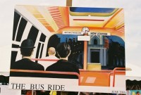 From behind-the-hand conversations on the bus we soon discover than everyone aboard is dead—though each passenger is in a different stage of spiritual denial or intellectual decomposition. As the bus leaves the grey town it ascends to a high country shot through with harsh, penetrating light. The passengers stumble into the light, finding themselves on an immense, bright landscape. The very scope of it frightens some, who retreat back to the “safety” of the bus.