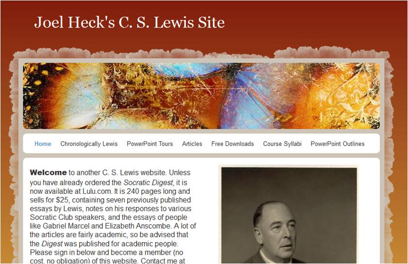 JoelHeck.com is a creative collection of a variety of resources that Dr. Heck has gathered over the years. He has dozens of powerpoint presentations covering many of Lewis’ writings, as well as a number of course outlines and handouts to support your study of Lewis. Heck provides a number of essential tools to understanding Lewis: a biography, discussion questions for key books, and outlines of key arguments. But Heck goes beyond the typical to provide material for the curious. For example, he leads us on powerpoint walking tours Oxford,