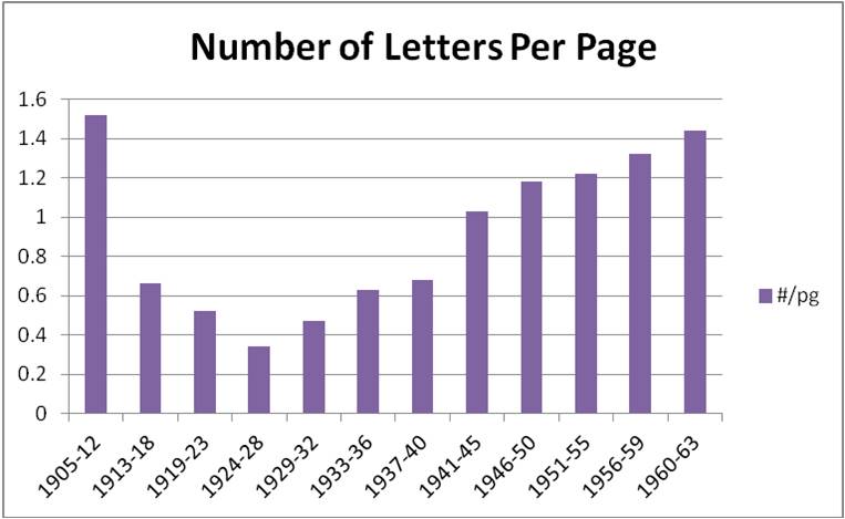 Number of Letters Lewis Wrote Per Page Per 4-5 Yr Period