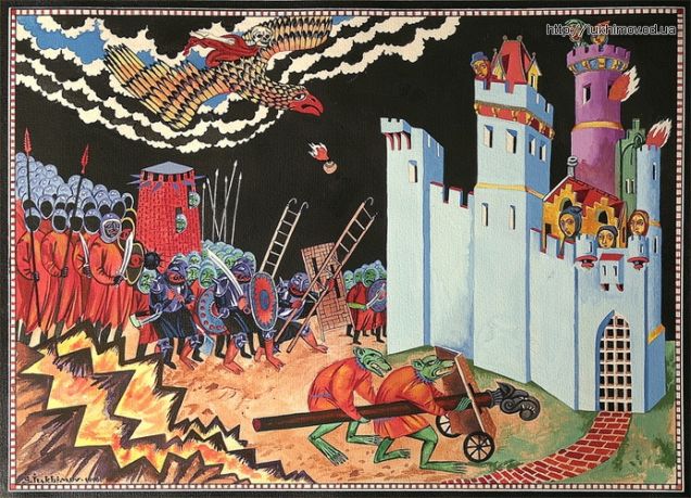 Another art post! I love finding stuff like this. One of the Russian versions of Lord of the Rings was illustrated by Sergey Yuhimov (or Sergei Iukhimov). Looking more like something I studied in my Art History classes in college, I would love to see an English version with these illustrations.