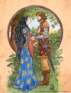 Here the man is caught by the beauty of an elf-maiden, enchanted and drawn into a world filled with curses, mythology, and the pride of men. Shaun Gunner at the Tolkien Society Blog has given an excellent background to the Beren and Lúthien cycle, which I won’t retell. It is, however, no mere trifle of a Romeo and Juliet tale. Beren is a great hero who dared to test the strength and cunning of Morgoth himself. Lúthien is one of the most powerful women in Tolkien’s work, and in this tale it is her critical interventions of power to win fidelity and cast shadows of doubt and sloth over evil that make success possible.