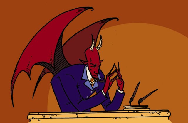 The title character of The Screwtape Letters is neither “a suave and subtle Mephistopheles with red cloak and rapier and a feather in his cap, [nor] even a sombre tragic Satan out of Paradise Lost” (Perelandra, ch. 10). Instead, Screwtape is quasi-sophisticated smoking room boor. If he made himself visible locally, he would take on the arrogant posture of the Ivy League or Cambridge elite, slouching in a comfortable chair while others sat at attention, waxing philosophically while he looked at his wine by the light of the fire, secretly enjoying the Château Léoville-Las Cases but wishing it was the ’96. Screwtape is the commensurate utilitarian, and thus makes an excellent bureaucrat.