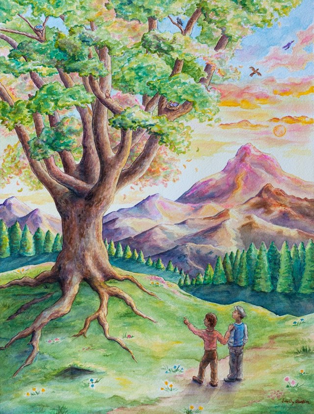 This is one of Emily Austin’s pieces, “Leaf by Niggle”. Check out her blog for more Inklings inspired art.