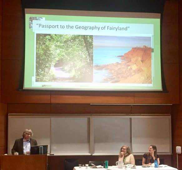 I focussed my presentation on a close reading of Rainbow Valley, showing how it teaches us about “Living, living fully and well”–Eugene Peterson‘s definition of spirituality (Christ Plays in Ten Thousand Places 29). I decided to take some risks in my presentation. First, out of my much longer paper, I chose to focus on a book that hadn’t been highlighted yet at the conference. Second, I trusted that the conference was filled with strong readers, so there were moments that we could glance at the material instead of diving in. I invited them to make the links in their minds, and I believe they did. Finally, I presented the paper not in a standard academic form but as someone leading a group in a pilgrimage into fairyland. Montgomery claimed to have “a passport to the geography of fairyland” (The Alpine Path 47): I trusted Montgomery and used her books as “faithful old key to the gates of fairyland” (Selected Journals 1 262). Following her breadcrumb trail into elfin woods, we experienced the lecture as wayfarers rather than as merely speakers and listeners.