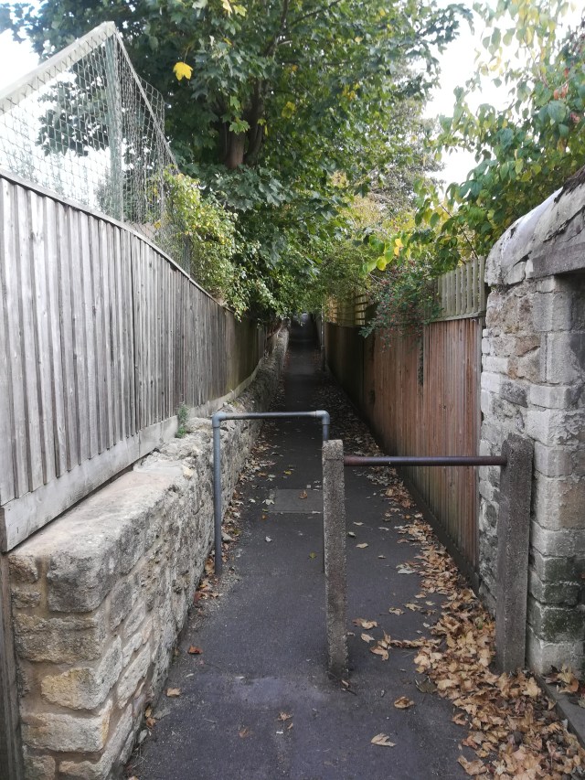 My tour begins in an alley. While on my North American continent, alleys can be terrifying zones, shrouded in violence. In the UK, however, I have found that alleys are quite lovely places, verdant and welcoming. This is one of the many alleys I have chanced in my UK travels, as it cuts through Headington away from the traffic.