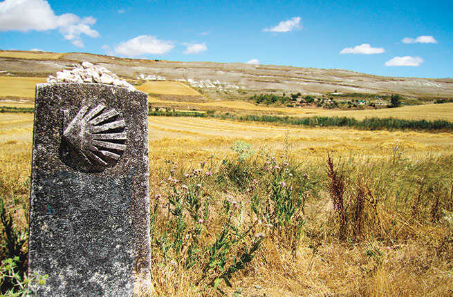 A post mark with the shell along the Camino de Santiago (way of Saint James), Spain. Photo taken on: August 15th, 2011