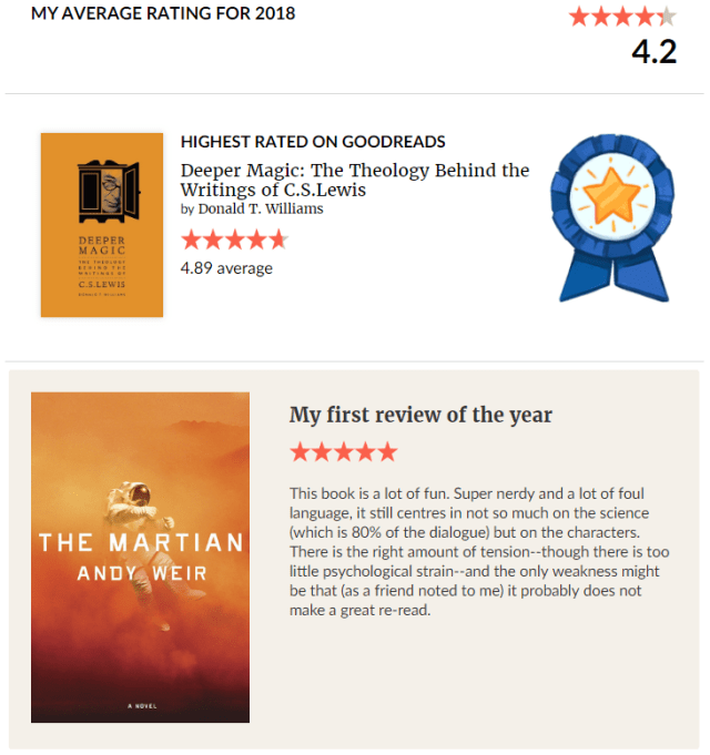 I will have some fun putting together the data in an upcoming post. It’s not often I get to play with graphs and charts, so I’m looking forward to it. Meanwhile, I wanted to share the Goodreads “My Year in Books” infographic. I’m pleased to say that I met my goals this year. Make sure you share your own reading journeys in the comments or on twitter for others to follow along. You can see the online infographic here.