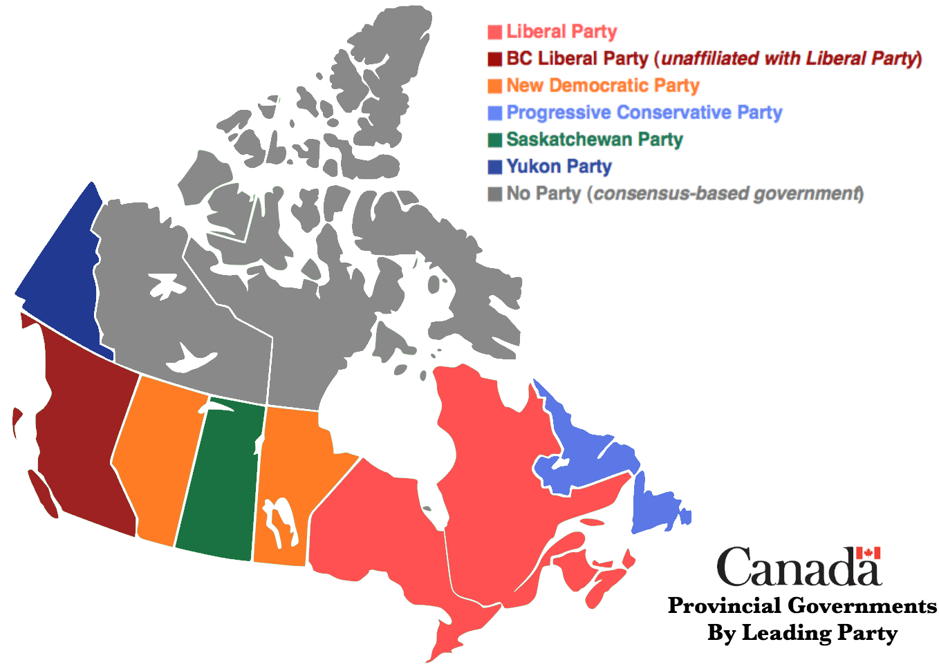 At the provincial level it is even more complex. In some cases the Red-Left and Blue-Right are indistinguishable, like here in PEI where neither has any clear ideology. In other places, there are true Conservative parties, like Alberta’s official opposition, the Wildrose party. There are conservative-leaning parties in power in Saskatchewan and the Yukon, and the Quebec and BC Liberal Parties are left-right coalitions–none of these are aligned with federal parties. Throughout the country, we also have special interest groups like the Marijuana Party, the Marxist-Leninist Party, and the Christian Heritage Party, but they get few votes.
