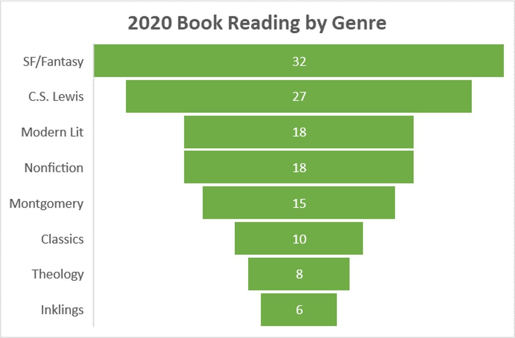What does 2021 look like? As long as I’m doing literary scholarship, it will be weighted upon the last century, though Montgomery and Lewis scholarship has proliferated in this century. Looking ahead, once again the first half of the year is heavy with Lewis and the second half with Montgomery. Unusual for me, I have no literature classes this year, so things are completely open. I have some personal goals: