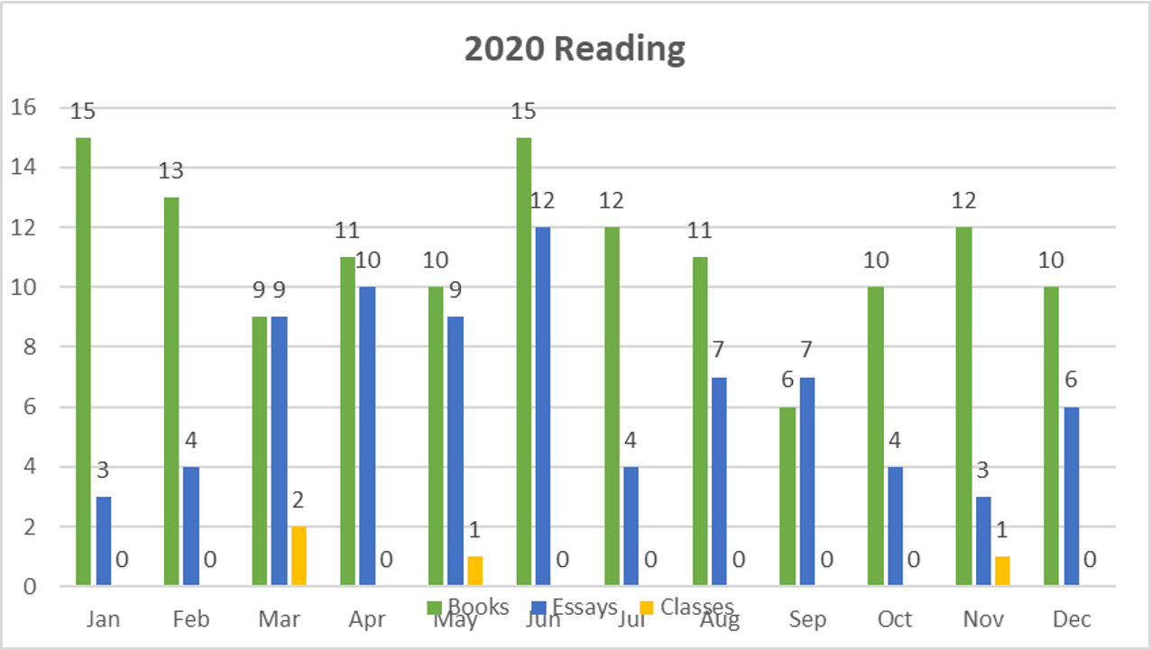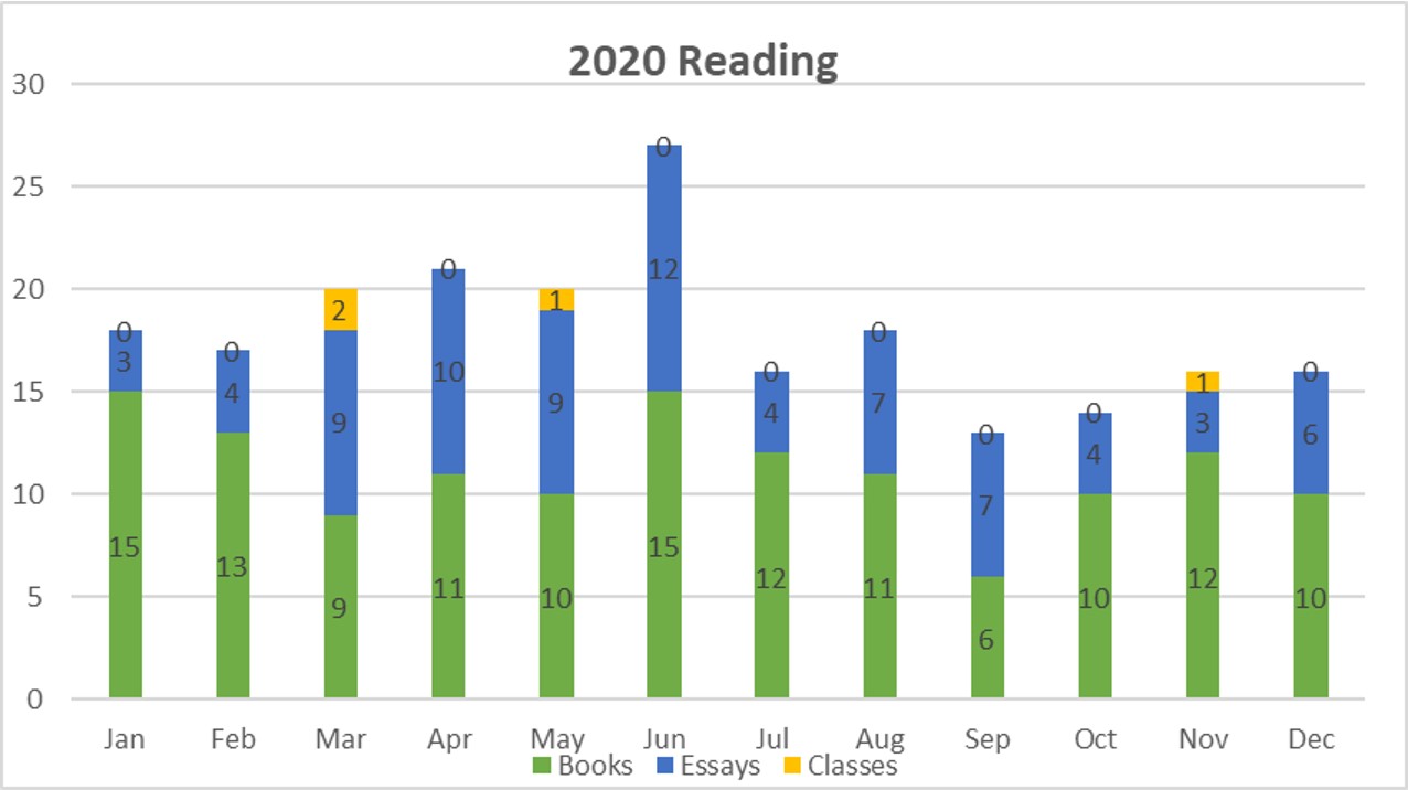 As I did not plan for a global pandemic, between teaching schedules and research projects, my reading was seasonal in 2020, as it usually is: