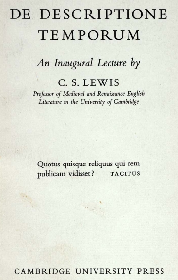 As we reflect on the anniversary of Lewis’ birth, I think it is intriguing that someone who so clearly was out of date was also capable of speaking to the times and, in some cases, predicting the change of seasons. The epigraph to the published version of the inaugural lecture is from Tacitus: