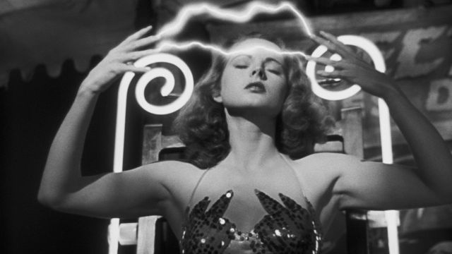 In both versions Stan’s success prompts him to leave the carnival and, with Molly, begin a new, classier act as The Great Stanton, a nightclub “mentalist.” At one show a woman sends him a card asking if her mother will recover; Stan discerns that her mother is actually dead, then exchanges gazes with the woman—Lilith Ritter (Helen Walker)—to acknowledge their kinship.