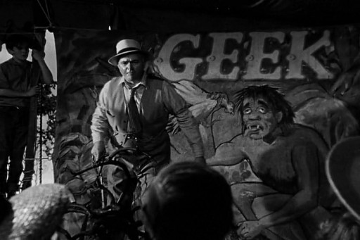 At last he seeks work as a carnival palm reader but is told that they don’t hire boozers. On second thought, there may be a job for him—a temporary one, just until they can get “a real geek.” Stan accepts the gig: