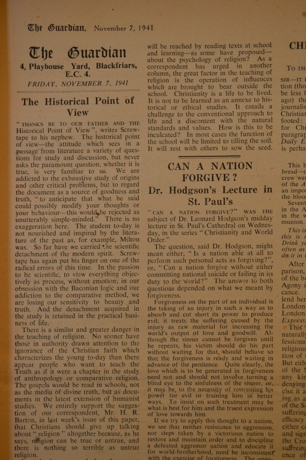 Nov 7 response essay to historical point of view Part 1 Guardian Screwtape Letters CS Lewis
