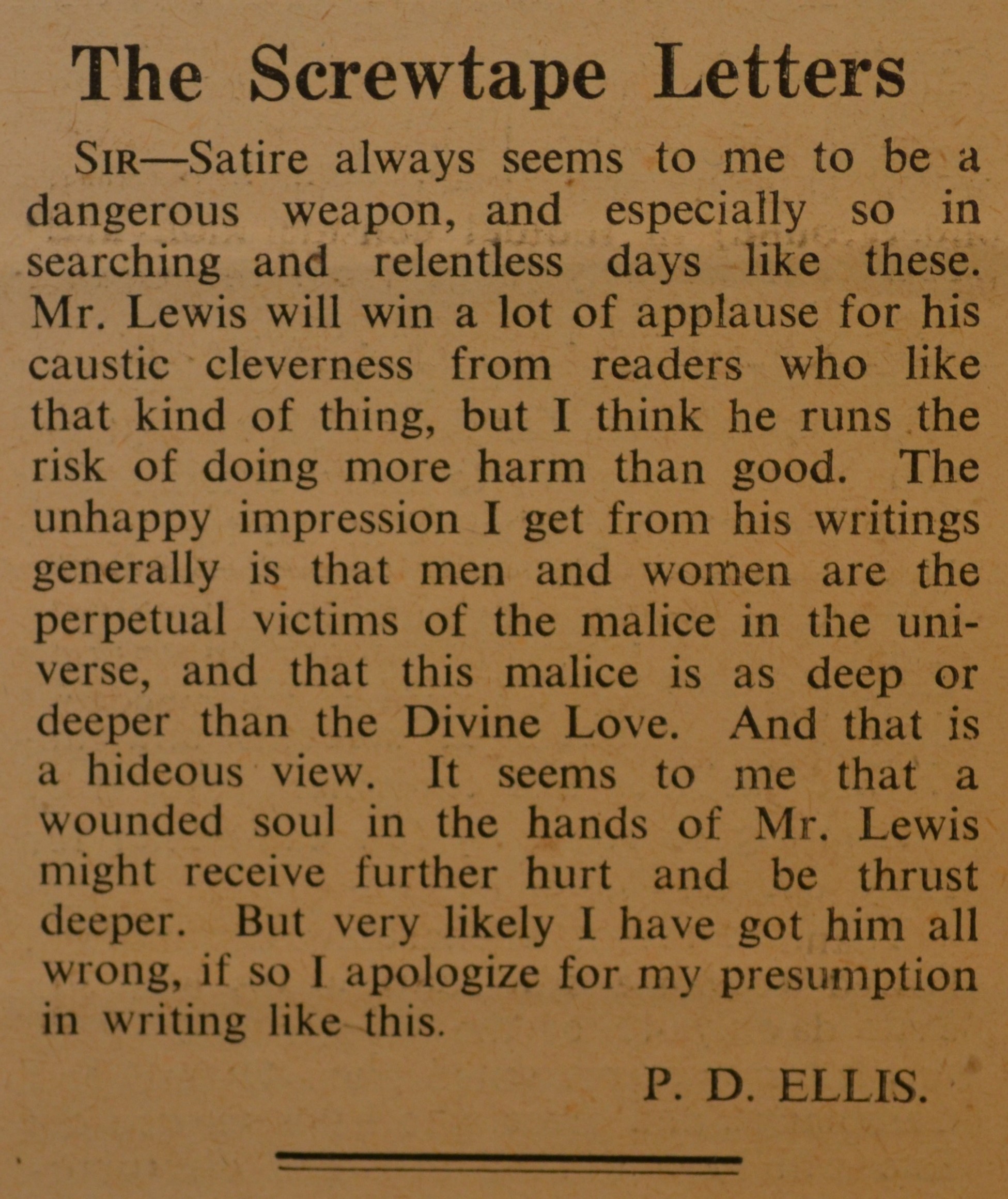 Oct 24 critical response to SL closer Guardian Screwtape Letters CS Lewis