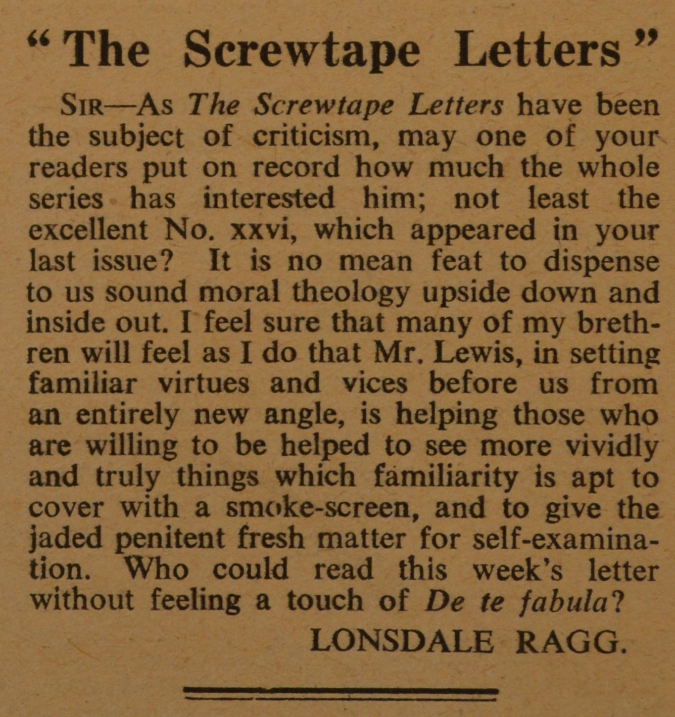 Oct 24 critical response to SL closer Guardian Screwtape Letters CS Lewis