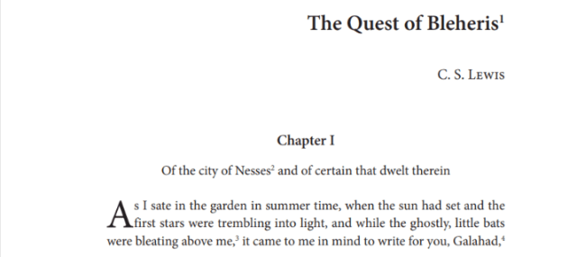 I just thought of something that caught my attention about your post. You describe “Bleheris” as a “Teenage Novel” in your essay. It’s the kind of statement that gets an English Major wondering. What, for instance, would something like this early attempt at at least a fragment of story tell us if the critic were to compare notes between Lewis and other writers at similar points in their otherwise respective lives and careers?