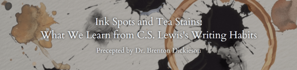 The name for this course comes from my experience visiting the Berg Collection at the New York Public Library, and sitting with the manuscript of The Screwtape Letters. There were a number of ink spots–Lewis used writing technology that matched his creative process–and there was a prominent round stain from one of his mugs of tea on a neat, clean page. In that moment, I began to understand Lewis as an artist. I also realized that much of what has been said about Lewis the Writer needs some rethinking.