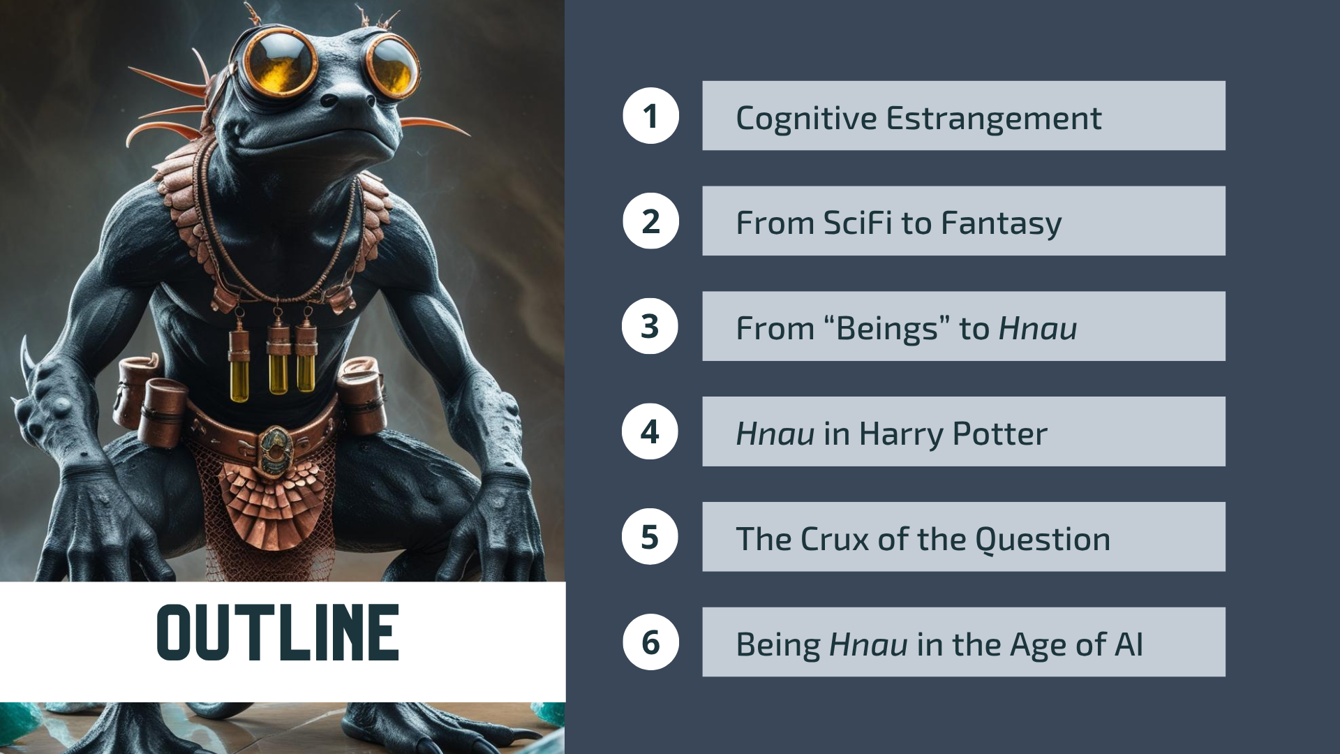 Though Suvin would resist the parallel, J.R.R. Tolkien’s “escape and recovery” in fairy stories has a similar effect. So, I turned to a fantasy world, Harry Potter, to think about the blurred edges of what it means to be hnau in the Age of AI. Although we have not yet seen humanlike Artificial Intelligence, we have begun interacting with AI bots and other sentient-like tools as if they were people—an anthropomorphizing instinct I call the “Wall-E Effect.” Like Lewis’s Malacandria, the Potterverse has other races of hnau, like centaurs or merpeople. But there is also a spectrum of magical somethings that show human-like sentience, from mandrake root or The Weasleys’ Ford Anglia all the way to the Sorting Hat and the paintings on Hogwart’s walls. Read as a recovery of cognitive estrangement, the Harry Potter chronicles offer guidance, warnings, and wisdom for human interaction in the Age of AI.