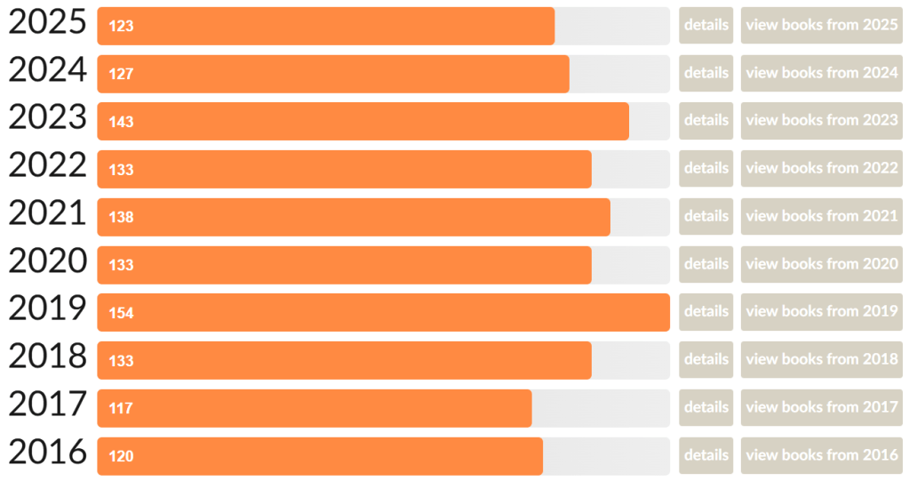 I met my personal challenge of 120 books for 2025–123 books, actually, when all is said and done.