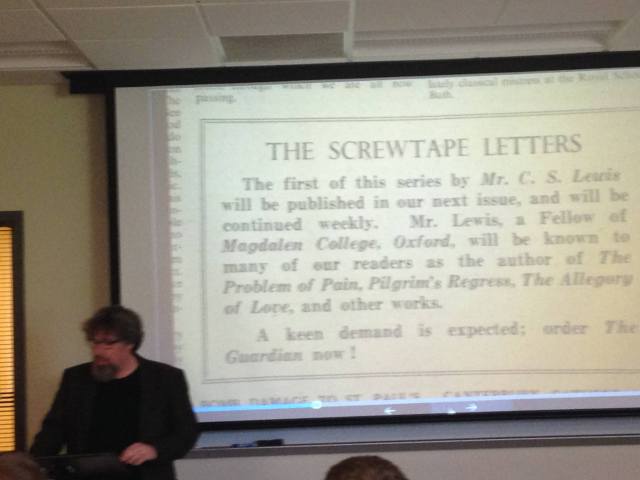 My work with The Screwtape Letters and the Ransom Cycle has continued since. Recently, I teamed up to do some archival work with Charlie W. Starr–C.S. Lewis handwriting expert and the first person to note in print that a Ransom Preface even existed. Charlie and I did some work on what we think to be the “Archangel Fragment,” Lewis’ single attempt to answer Screwtape with letters of angelic advice. You should be able to see bits of our paper, “The Archangel Fragment and C.S. Lewis’s World-Building Project” here, but you can order a copy on Amazon.