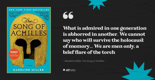 Moreover, Miller is able to capture a mythic voice–a story of depth whose primary narrator is able to be human and near to the action while giving a thorough sense of wonder and distance and greatness that a myth requires. Without losing a compelling personal story, a myth retold should invite us to foundational themes in a world touched by the divine or the fates. In The Song of Achilles, I felt the Aegian culture breathe through the text and experienced Homer’s war epic more dynamically than I had ever done before. I was drawn in more personally to mythic moments of the text, like the dangers of hubris and the power of friendship and the capricious nature of the gods. More than this, Miller’s chosen literary themes danced in the story with vivacity. The temptation to entomb what we love, the love of craft, the inhumanity of human endeavours, the loss of self in greatness, and history’s true measure of a Great One–Miller excells at giving this text its own mythic life. She even succeeded in giving me an Achilles that I think is worth remembering in history.